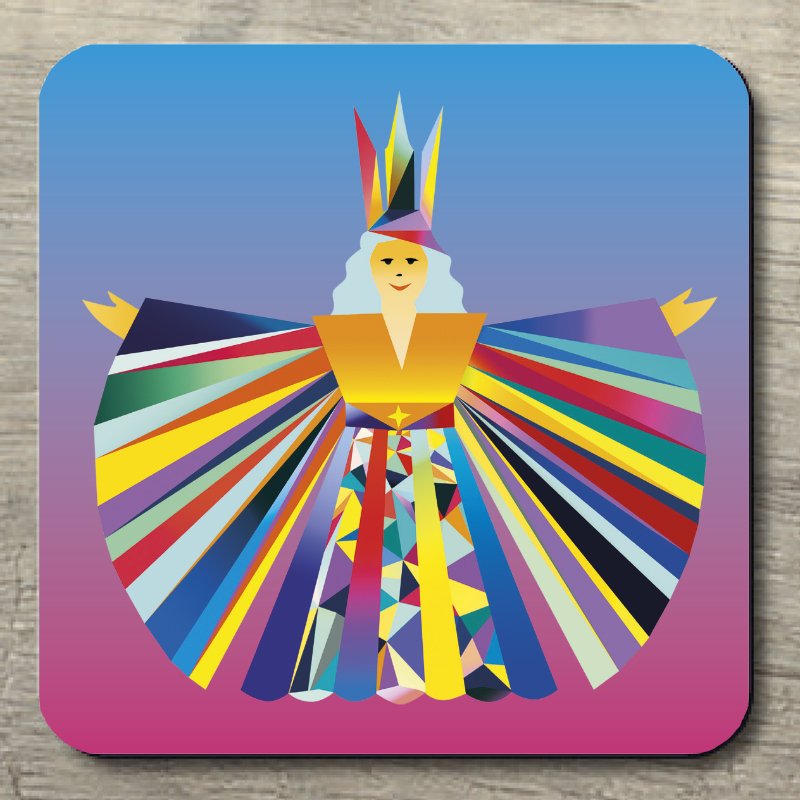 Untersetzer POP ART Christkind Rauschgoldengel auf blau/pink